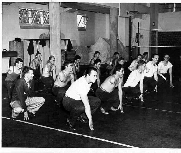 softball team do group exercises (the squat and up)in the new