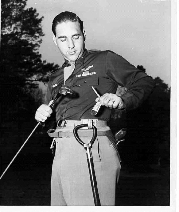 Golf Cpt. Holyburg using golf club with interchangeable heads. (Photo